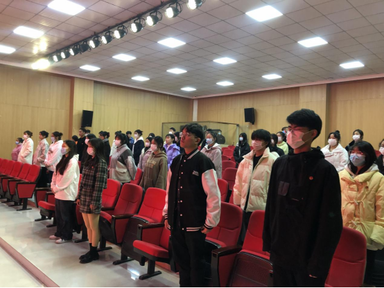 为深入学习贯彻党的二十大精神,加强共青团组织队伍建设,12月11日,william威廉亚洲官方在一楼演播厅举行2022年新团员入团仪式,团总支书记刘馨馨和36名新团员参加仪式。