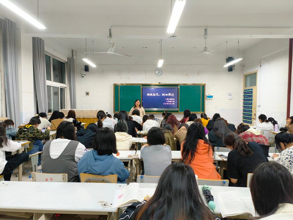 各班在教室开展心理健康教育主题班会。辅导员及团支书向同学们讲述了挫折的含义、性质,以及挫折对个人生理和心理的影响等,强调心理健康可以促进大学生全面发展,并为同学们以后的大学生活指明了方向,鼓励同学们以积极的心态面对挫折,战胜挫折,希望同学们能够树立积极阳光的心态,勇于前行。