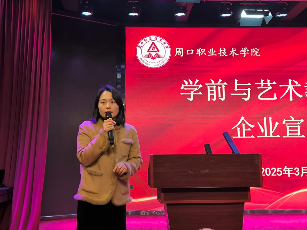 为拓展我院毕业生就业渠道,增强个人就业能力。3月18日下午,william威廉亚洲官方在艺术演播厅召开2025届毕业生企业专场宣讲会,周口贵和幼儿园园长陈改革受邀宣讲,22级、23级学前教育、早期教育专业学生参加宣讲会。