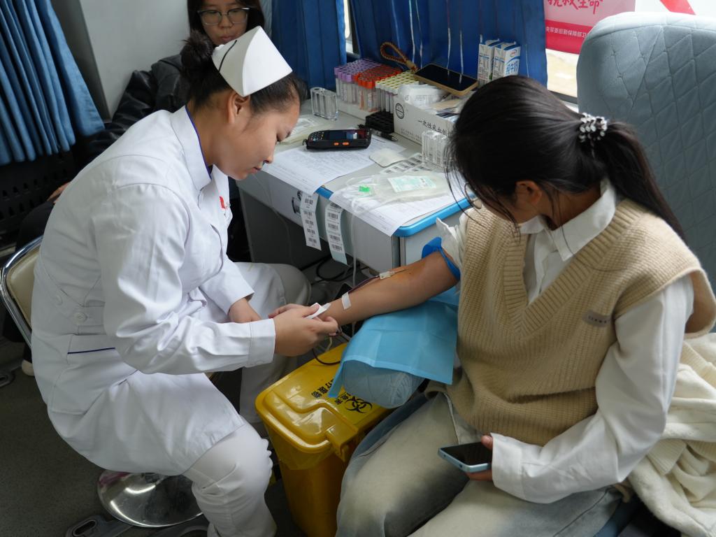 献血车内,医护人员神情专注、操作娴熟,以专业之力为爱心筑牢坚实保障。