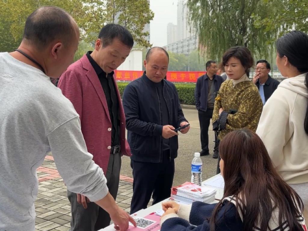 志愿者们围在桌前,仔细填写登记信息,每一笔都是对生命的敬意、对爱心的传递、对公益的郑重。随后他们在背景板上签下自己的姓名,落笔瞬间,便是热血青春应有的模样。