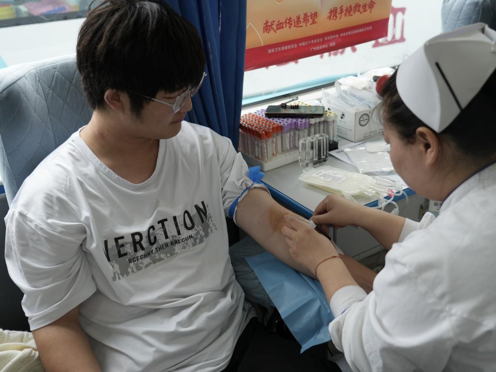 志愿者们撸起衣袖、伸出臂膀,配合医护人员完成专业采血。他们始终坚定从容,即便有过片刻紧张,也会咬牙坚持,用热血诠释着青年的无畏担当。