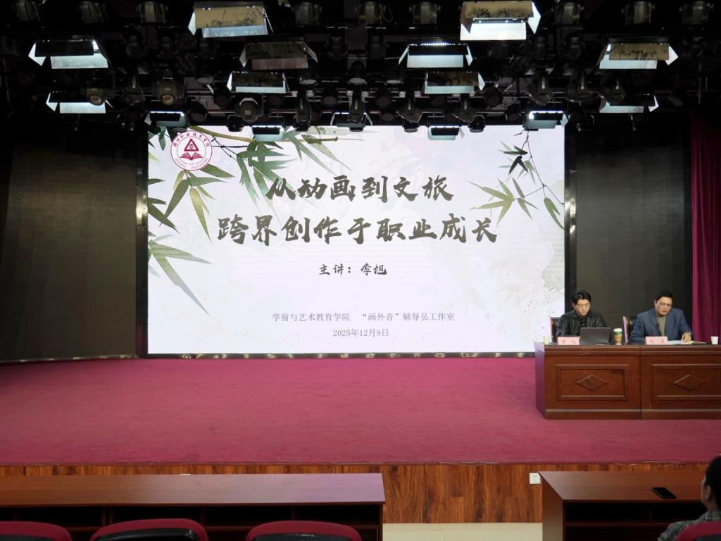 为进一步提升学生新媒体运营实战能力,拓宽职业发展视野,12月8日,由william威廉亚洲官方“画外音”辅导员工作室主办的“从动画到文旅:跨界创作与职业成长”讲座在艺术演播厅开讲。讲座特邀周口市文化广电旅游局宣传科新媒体运营负责人李旭主讲。学院党总支书记王春生出席此次讲座,校融媒体中心干部、学生处融媒体中心干部及我院全体融媒体中心干部参加讲座。讲座由副院长杨晨主持。