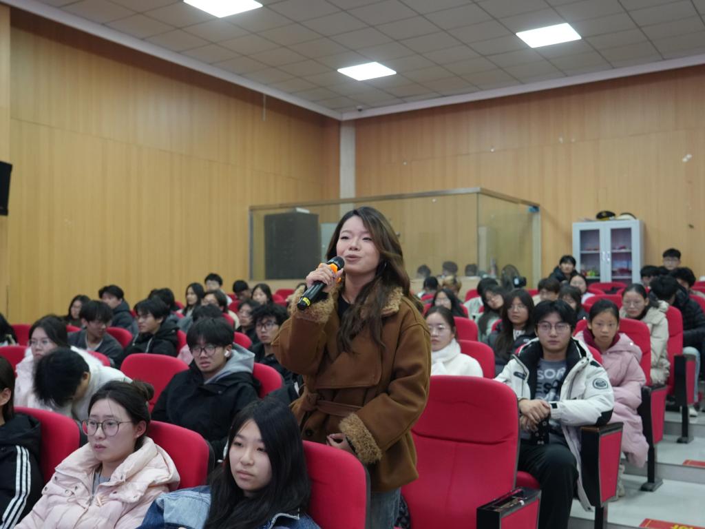 朱永亮老师以“诵读中的声音控制与情感表达”为主题开展专题分享,他结合巴金《我的心》等经典篇目进行现场示范教学,逐句拆解诵读中语调起伏、停顿节奏的把控技巧,细致讲解声音力度调节与情感传递的适配方法;并邀请在场学子进行实践展示,针对性指正发音规范、情感表达精准度等问题。