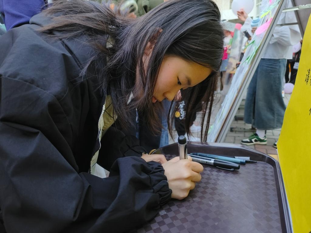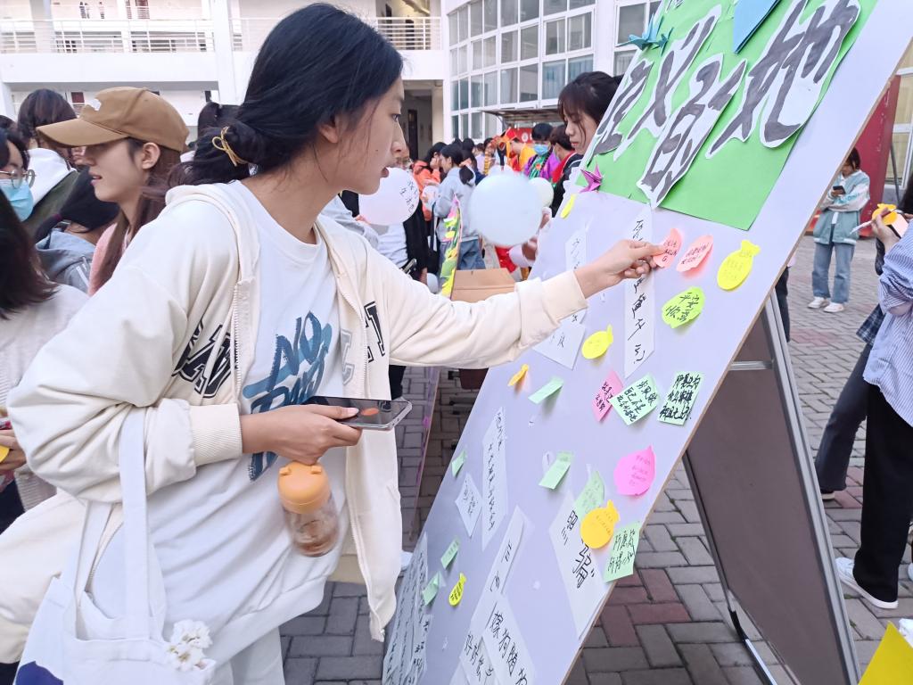 撕掉标签,不被束缚。借助便利贴,写下同学们对自我价值的追求及对亲人、朋友、老师的祝愿,同时赠予女生一个带有暖心文案的气球,学院男生也通过唱歌的方式表达对女生的赞美,激励着女大学生超越自己,突破自我,勇敢做自己!