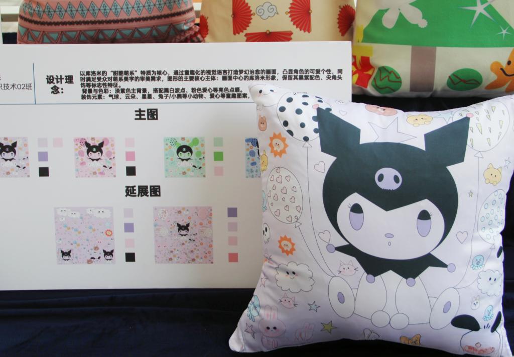 本次作品展共呈现53件精美作品。设计灵感汲取自丰富多元的生活元素,作品从设计、排版到打样,均由同学们自主完成;展品以帆布包、抱枕等织物类产品为主,兼具艺术观赏性与日常实用性,不仅实现了专业创作与生活美学的有机融合,更生动彰显了学生的创新思维与实践能力。