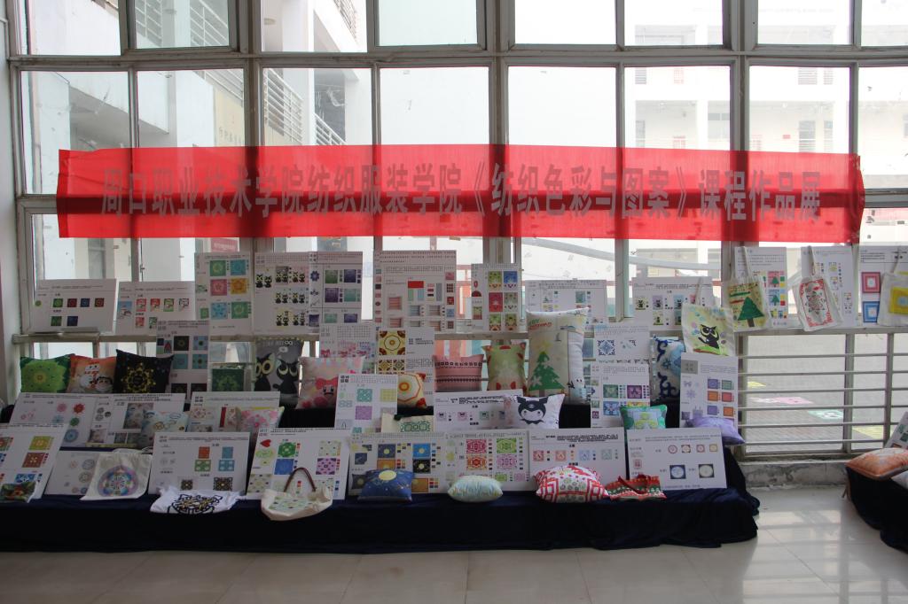 为检验课程教学成果,深化学生专业认知,拓宽专业视野,1月5日,纺织服装学院在学院一楼举办2025级现代纺织技术专业《纺织色彩与图案》课程作品展。